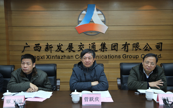 2月13日上午9時(shí),自治區(qū)國(guó)資委主任、黨委書記管躍慶一行到廣西新發(fā)展交通集團(tuán)開展調(diào)研座談,了解企業(yè)生產(chǎn)經(jīng)營(yíng)情況及需要解決的困難和問題,并對(duì)集團(tuán)公司生產(chǎn)經(jīng)營(yíng)及管理工作提出了指導(dǎo)性的意見和建議。