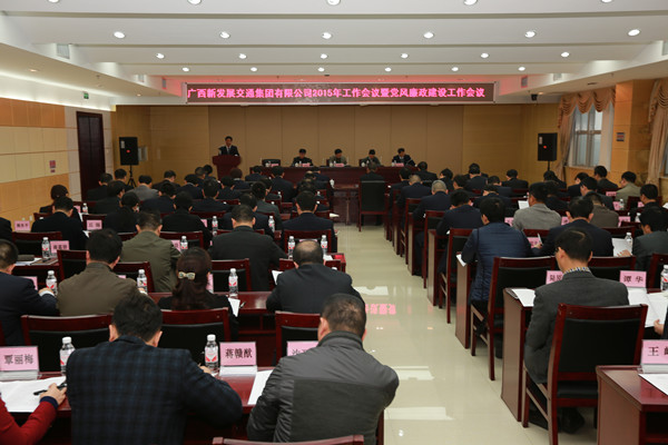 春回大地迎新氣,一元復(fù)始開新局。3月6日上午,集團(tuán)公司在邕召開了2015年工作暨黨風(fēng)廉政建設(shè)工作會(huì)議。自治區(qū)國(guó)資委副巡視員楊朝林、自治區(qū)交通運(yùn)輸廳總工程師王劼耘、自治區(qū)國(guó)有企業(yè)監(jiān)事會(huì)主席韋增忠出席了會(huì)議。集團(tuán)公司領(lǐng)導(dǎo)班子、監(jiān)事會(huì),直屬各單位領(lǐng)導(dǎo)班子,集團(tuán)公司總部中層領(lǐng)導(dǎo)干部等共98人參加了會(huì)議。會(huì)議由集團(tuán)公司總經(jīng)理李定倫主持。