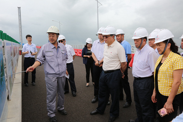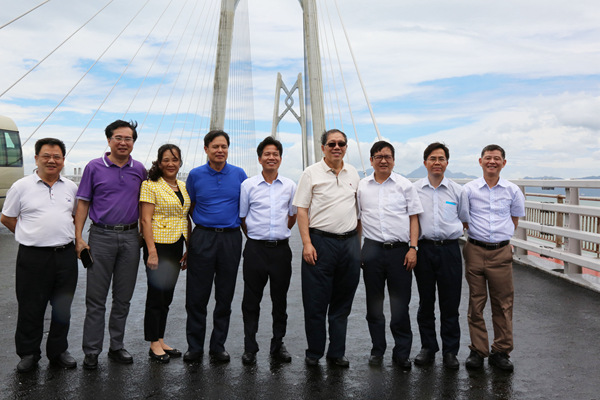 近日,廣西新發(fā)展交通集團黨委書記、董事長朱堅和陪同自治區(qū)人民政府副主席陳剛視察港珠澳大橋工程項目。陳剛副主席對港珠澳大橋工程項目施工質量表示稱贊。