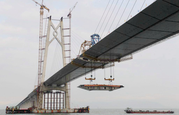 港珠澳大橋是全球最具挑戰(zhàn)的跨海項目,大橋全長35.6公里,跨越伶仃洋,東接香港,西接珠海和澳門,是世界上最長的跨海大橋工程,也是“一國兩制”框架下粵港澳三地首次合作建設的大型跨海交通工程。大橋的建設對密切珠江西岸地區(qū)與香港地區(qū)的經濟社會聯(lián)系,促進兩岸經濟社會協(xié)調發(fā)展,保持港澳地區(qū)的持續(xù)繁榮穩(wěn)定,具有劃時代的意義。