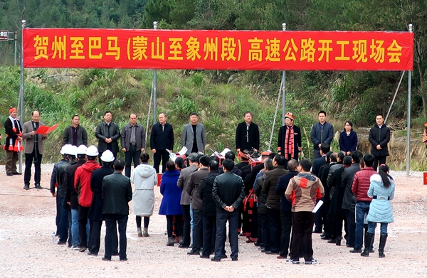 12月22日,集團(tuán)公司賀州至巴馬高速公路(蒙山至象州段)(簡稱“蒙象高速”)在金秀縣召開開工現(xiàn)場會(huì),標(biāo)志著該項(xiàng)目正式開工建設(shè)。來賓市人民政府副市長韋平主持會(huì)議。